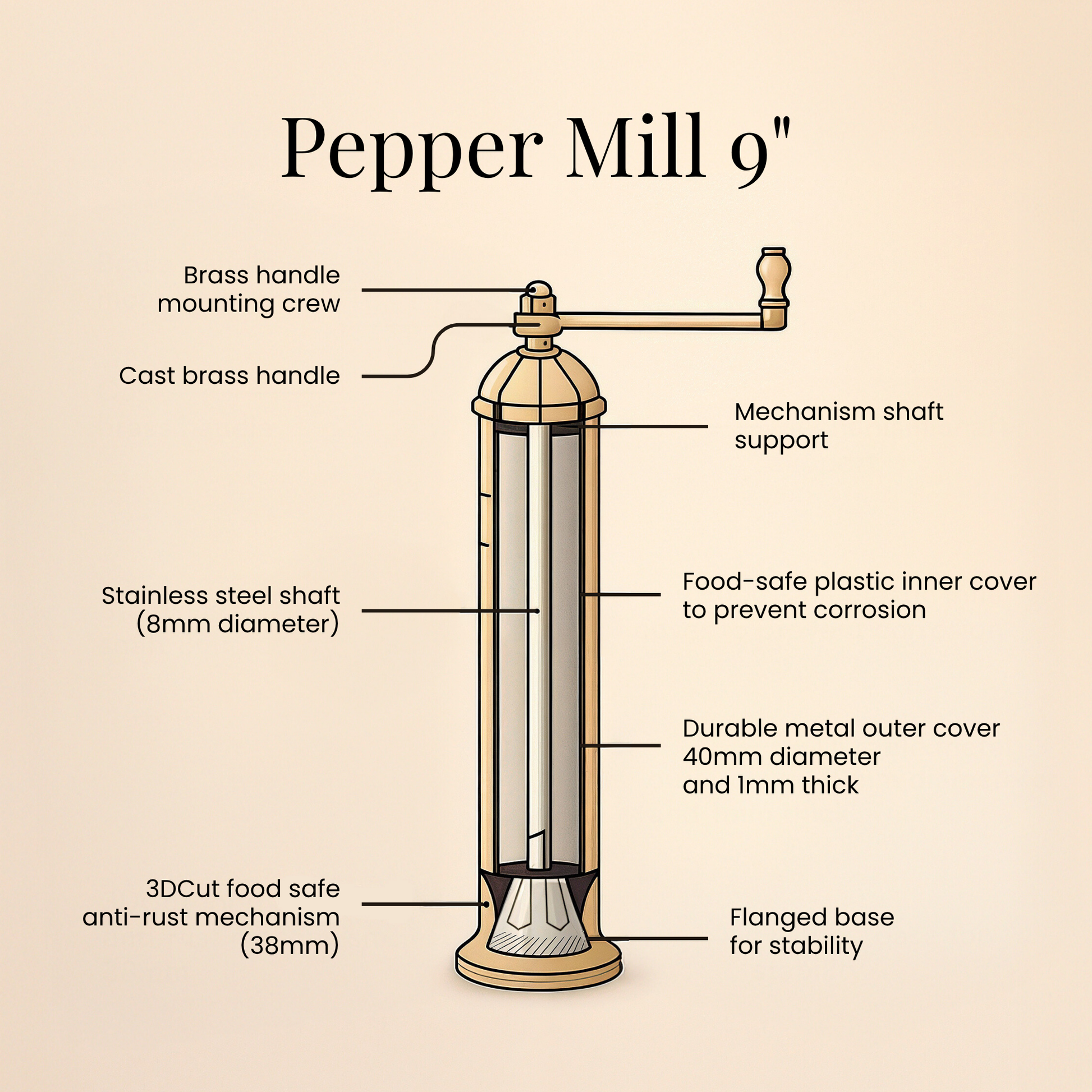 Each mill is expertly handmade in Northern Greece by a family-run workshop dating back to 1977. These are the originals - crafted with a solid brass body and fitted with a precision 3D-cut grinding mechanism, they produce a smooth, consistent grind that unlocks full flavor in every turn.